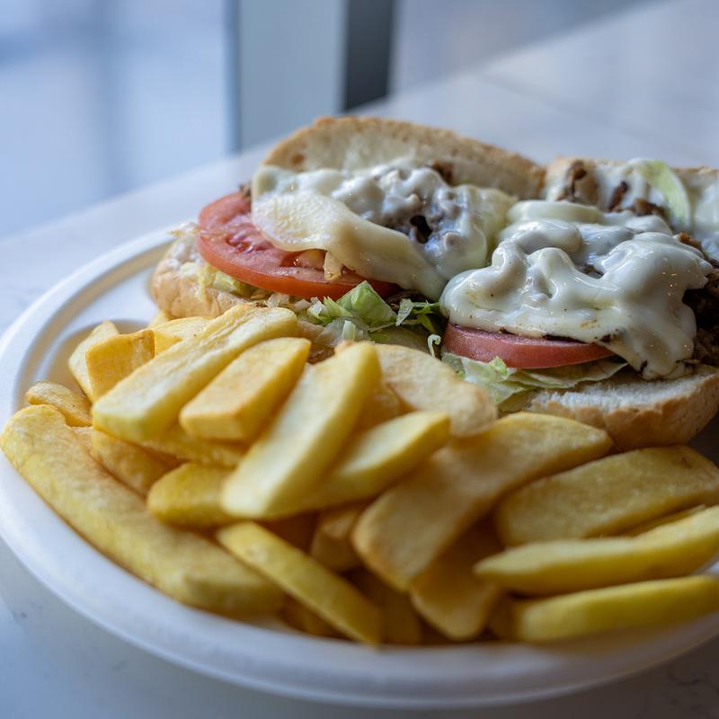 Steak, grilled onion, provolone cheese, lettuce, tomato, & mayo.