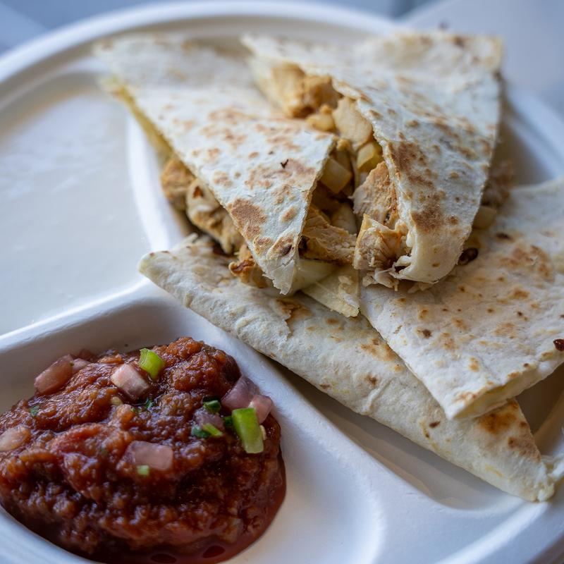 Chopped chicken breast, bell peppers, onion, with salsa & sour cream.